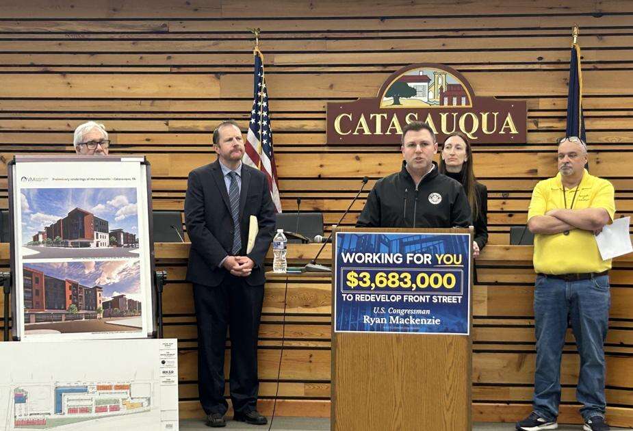 In a visit to Catasauqua March 20, U.S. Congressman Ryan Mackenzie, R-7th, announced the borough would receive $3,683,000 to support the redevelopment of the Iron Works project on Front Street.