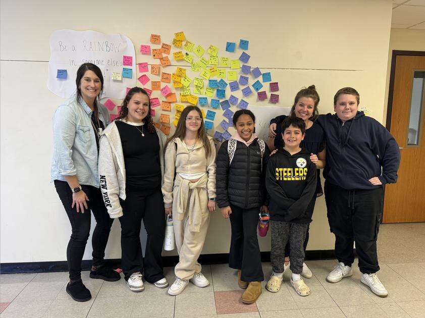 CONTRIBUTED PHOTOSThe Catasauqua Middle School Good Vibe Tribe Club spreads positivity with its interactive hallway project March 19.