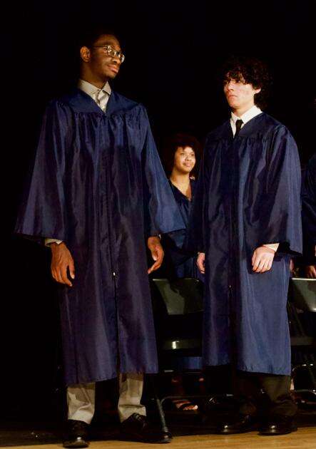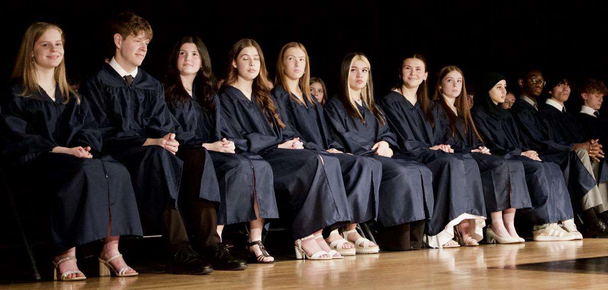 ABOVE: Salisbury High School National Honor Society inductees take their place on stage during the induction ceremony March 19.