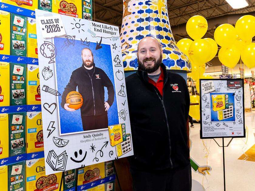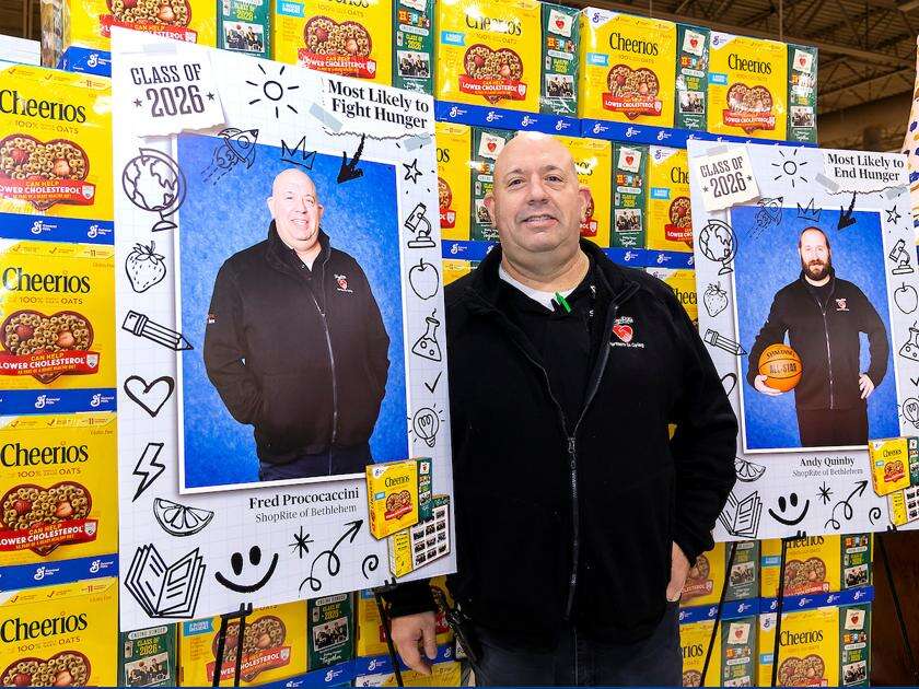 ShopRite of Bethlehem recently raised nearly $15,000 to support hunger relief efforts as part of the annual ShopRite Partners In Caring Cheerios Contest, a friendly fundraising competition among nearly 270 ShopRite stores. Because of their efforts, two local associates, Andy Quinby (right) and Fred Prococaccini, will be featured on special edition Cheerios boxes arriving in stores this spring.Contributed photo