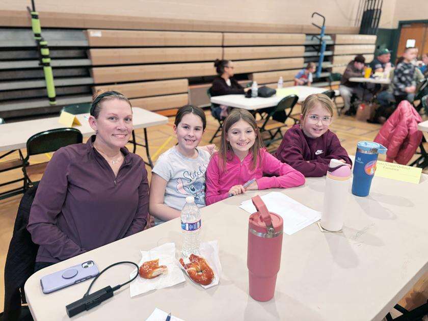 From left, Megan Oxford, Callie Bierce, Hannah Oxford and Finley Cope are pictured at the recent trivia night fundraiser at Alburtis Elementary School.