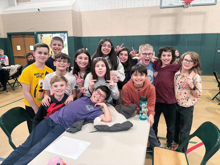 The fundraiser brought theater fans, families, friends and students to Alburtis Elementary School in support of the spring production of “Beauty and The Beast JR.” ABOVE: Fifth grade students involved in the production gather for a photo at the recent trivia night fundraiser.