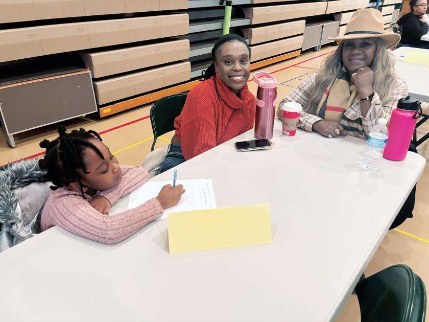 Press Photos by Sharon SchrantzAlburtis Elementary School students recently participated in a trivia night fundraiser to benefit the spring production of “Beauty and the Beast JR.” ABOVE: Luna and Jaida Dussard and Deborah Williamson attend the Alburtis Elementary School’s trivia night fundraiser recently.