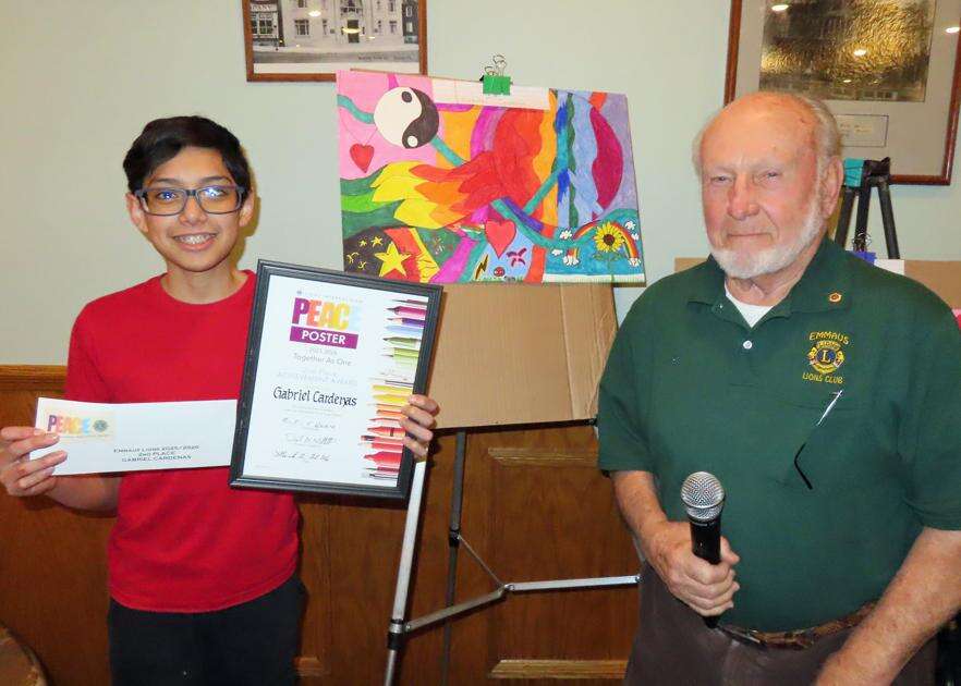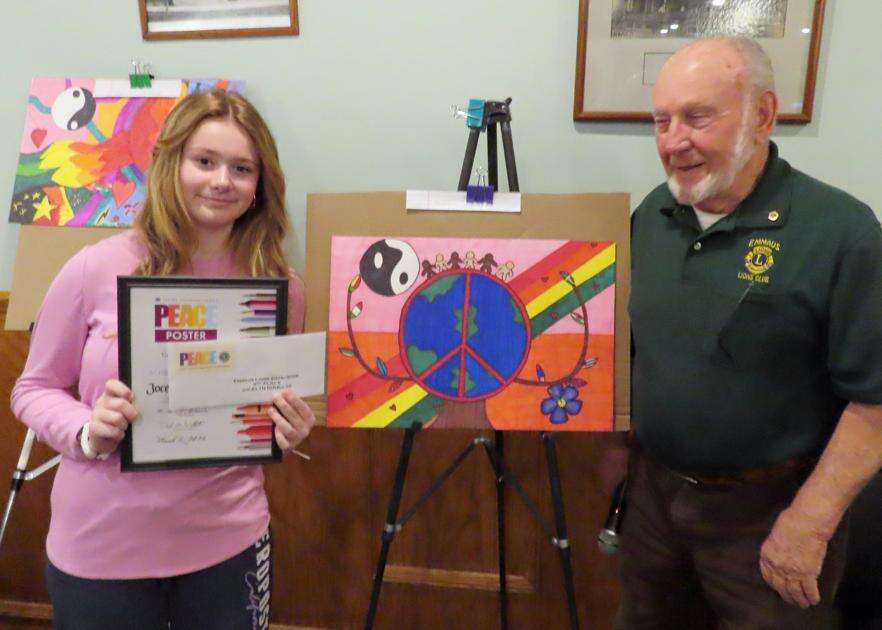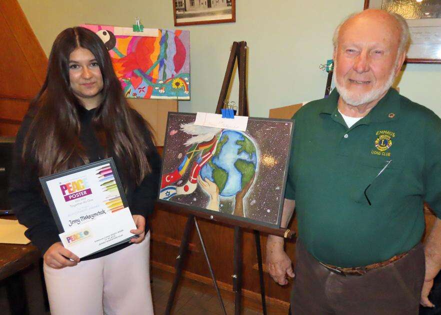 Jenny Maksymchuk’s poster earns first place recognition in the Emmaus Lions Club’s annual peace poster contest.