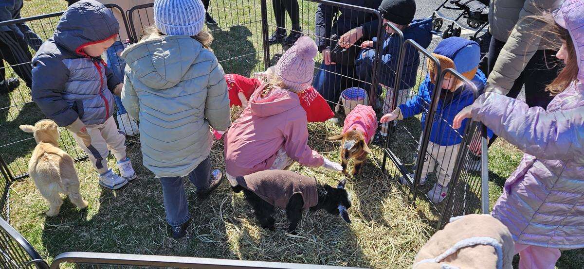 Kids enjoy petting and cuddling with the various animals from The Peaceable Kingdom Petting Zoo.