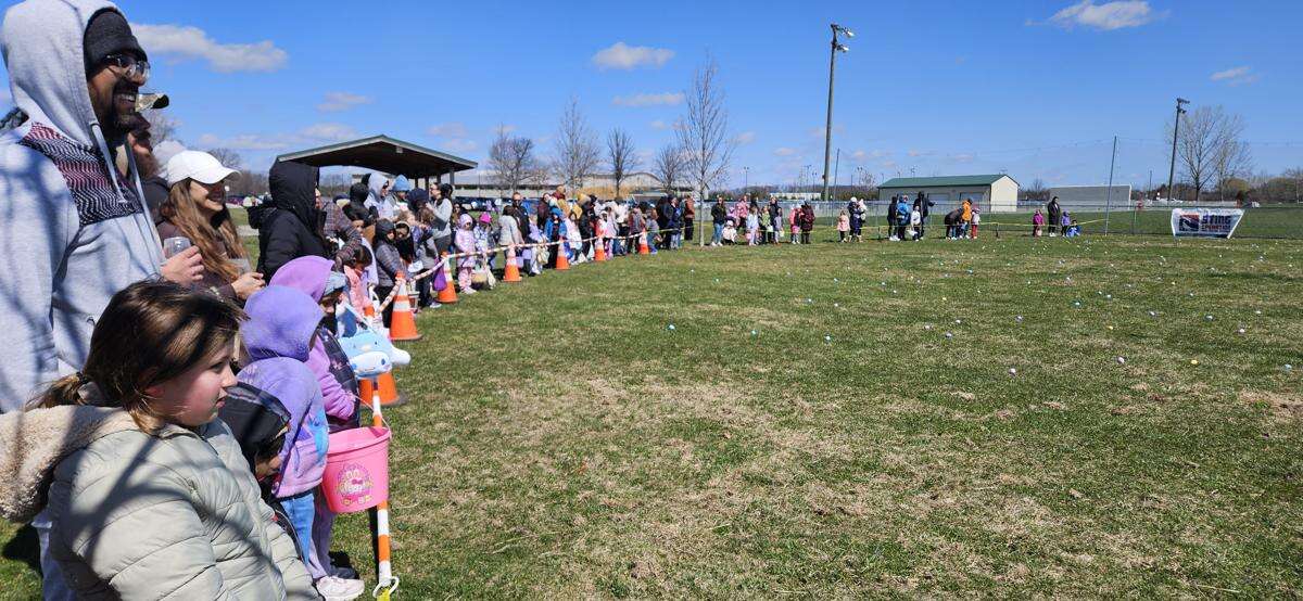 Children and their parents anxiously await the final moments just before the barricades are lowered and the egg hunt commences. Additional photos appear on Page A11.PRESS PHOTO BY TABITHA SCHADE