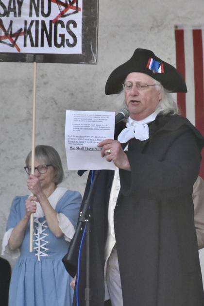 Live music was provided by several performers and Revolutionary Era re-enactors circulated throughout the crowd. One read the Declaration of Independence which reinforced the No Kings theme. Entertainment was provided for children who attended.