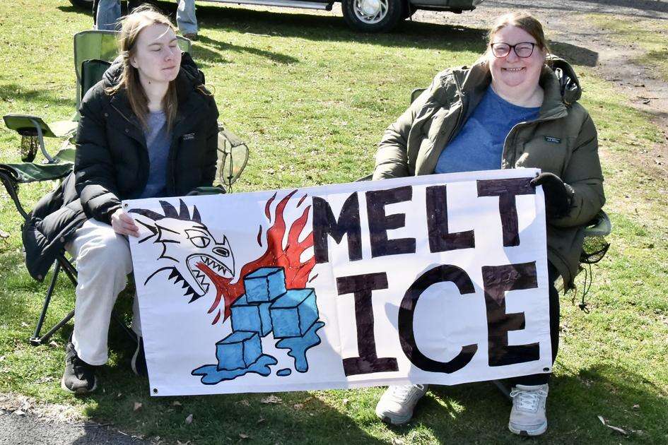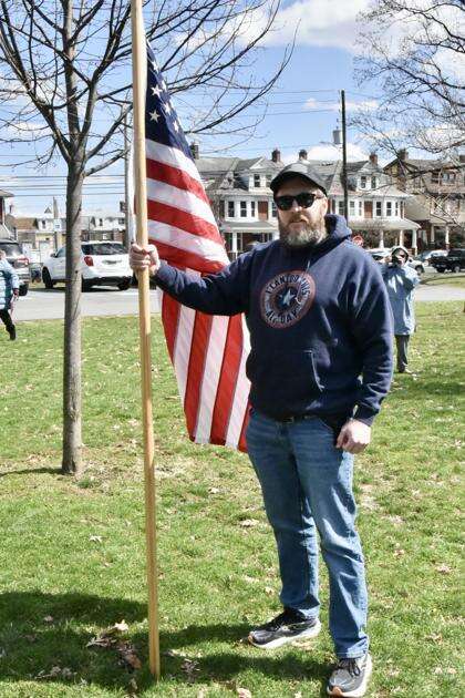 The gathering at Bethlehem’s Rose Garden attracted thousands of people who displayed signs inside the park and along the Broad Street, Eighth Avenue and Union Boulevard sides of the park, which evoked honking horns of support by passers-by.