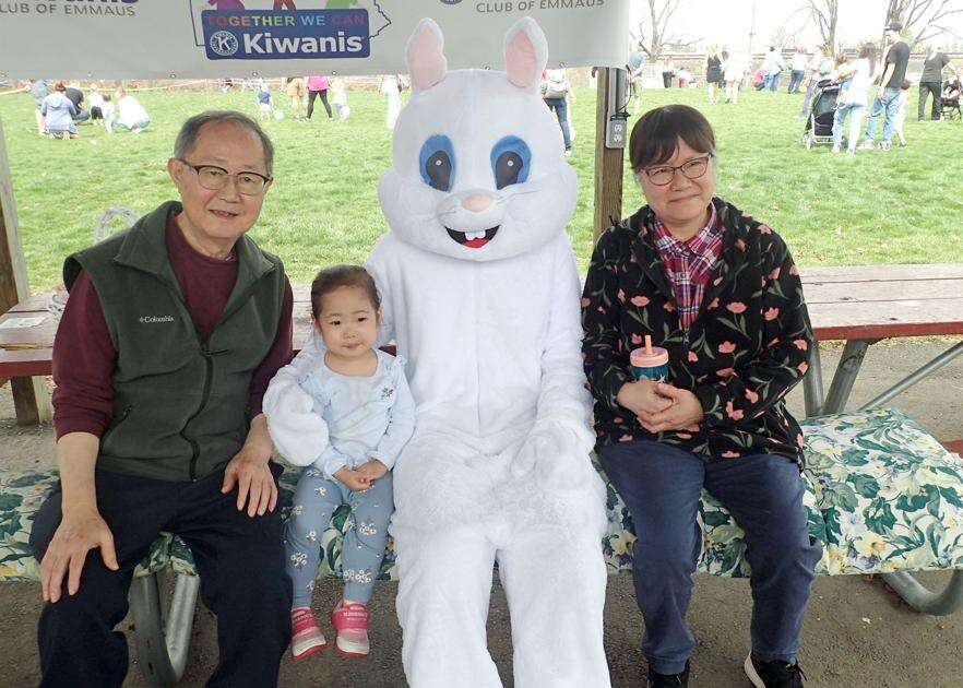 Press Photos by C. Richard ChartrandThe Kiwanis Club of Emmaus hosted its 74th annual egg hunt April 4. Held in Emmaus Community Park, the event welcomed egg hunters 10 years and younger. Special prizes were awarded in each age group. The event also included photo opportunities with the Easter Bunny. ABOVE: A festively dressed young hunter checks her basket.