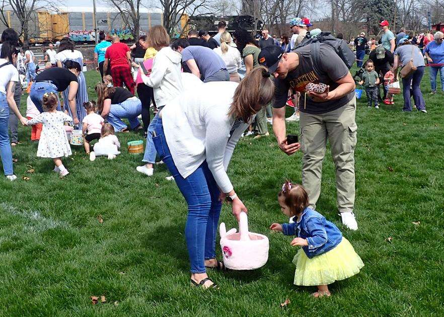 Young hunters gather eggs in Emmaus Community Park April 4.