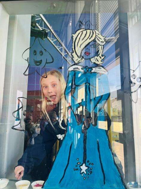 Contributed PhotosYoung artist Reina Correnti takes a peek at the work of student muralists Chloe Correnti and Maya Ordonez.