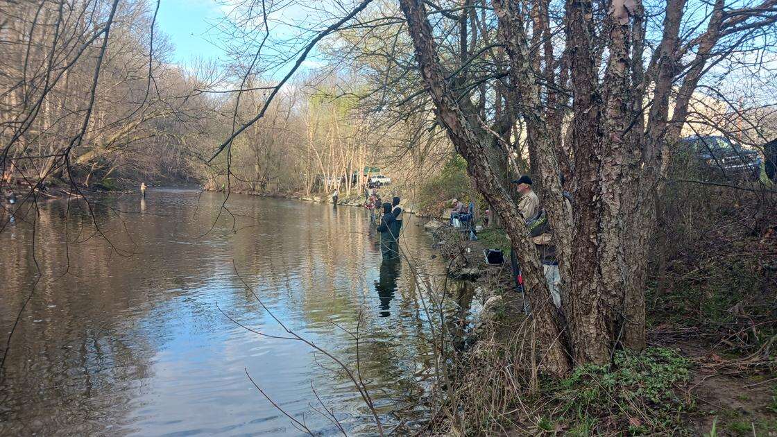 PRESS PHOTOS BY JIM WEBERAnglers take their spots along the Helfrich Springs section of the Jordan Creek, Whitehall Township, for opening day of trout fishing in the state April 4.