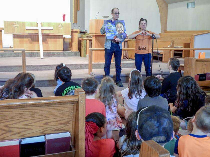 Before the kickoff of the hunt, The Rev. David Henry and his wife Lisa presented “The True Meaning of Easter” in the sanctuary, emphasizing to the children that God loves them.