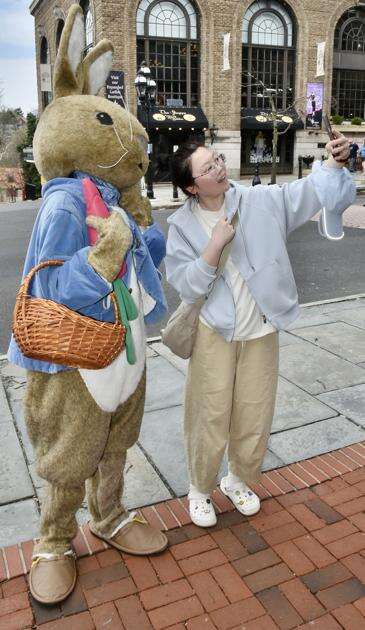 Selfie with the Bunny Tweet Published April 16. 2026 01:57PM Press photo by Dana GrubbSandy from New York City snaps a selfie with the Moravian Book Shop Easter Bunny on Main Street April 4.