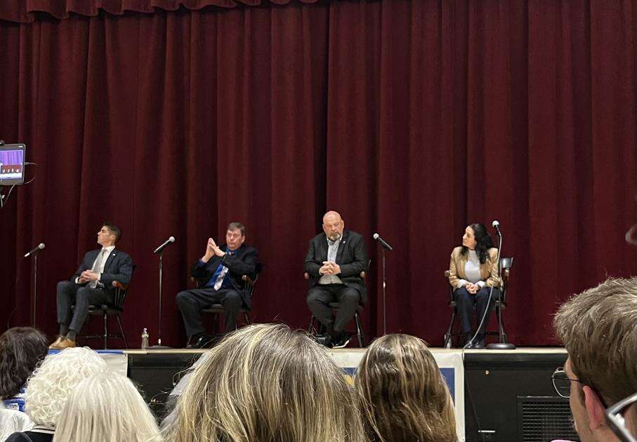 PRESS PHOTO BY MICHAEL HIRSCHCandidates Ryan Crosswell, Lamont McClure, Bob Brooks, and Carol Obando-Derstine participate in a PA-07 Democratic Primary Forum held at Cedar Crest College’s Alumni Hall on April 7. The event, cosponsored by the Lehigh County Democratic Committee, Indivisible Bethlehem, and Red, Wine, and Blue, gave voters an opportunity to hear directly from the candidates.
