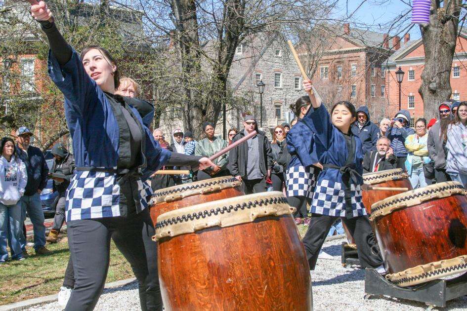 Press photos by Nate JastrzemskiThe Bethlehem Cherry Blossom Festival and Lehigh Valley Book Festival Day made for a beautiful dual event at the Bethlehem Area Public Library March 28. Though the book festival was held at libraries Valley-wide, hundreds came for annual reflection of Japanese culture at the Tondabayashi Garden. Above: Traditional drummers of Iroha Taiko, a drumming group from Lyons, entertains a crowd of about 400, filling the clear afternoon air with staccato beats from Japan.