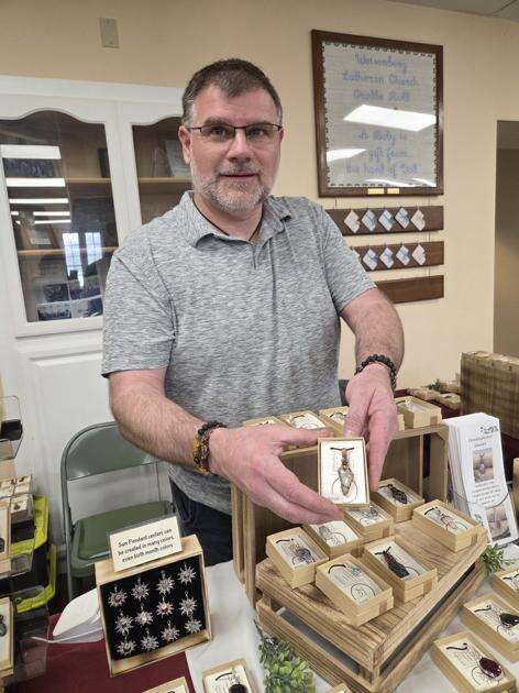 “Of course, I use my creativity and make sure the things I make are pleasing to the eye,” Fegely said, who uses natural stones, rocks and resin in his pieces.