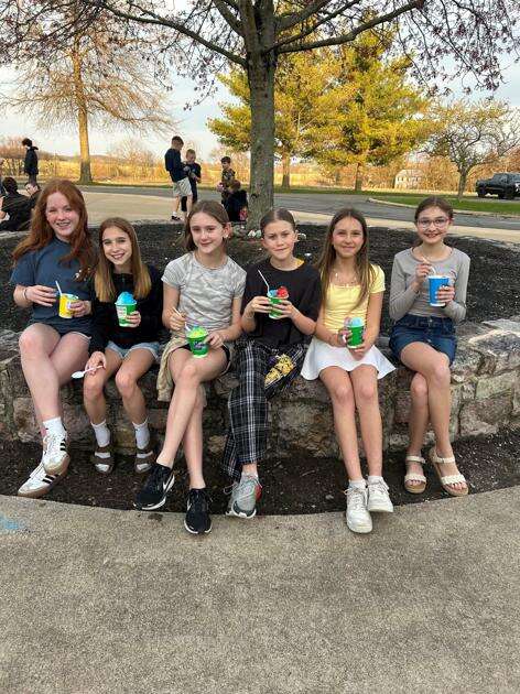 Students Katelynn Heffner, Mckenzie Laky, Gigi Fugazzotto, Riley Wirth, Brooke Kayal and Ellie Vernarr enjoy Kona Ice at the sixth and seventh grade social.