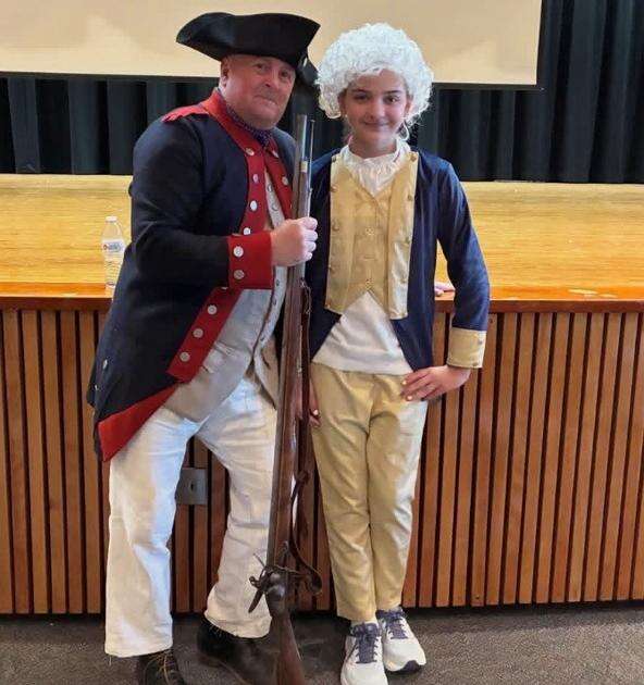 Mr. Jesberger and sixth grader Kate Bedbarski at the 250th celebration assembly.PHOTOS BYADDISON WATT