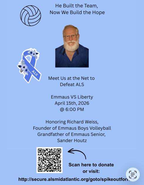 Rich Weiss, the program’s coach for its first six years, was recently diagnosed with ALS. The event, named Spike Out ALS, will honor Weiss’ career and contributions to the East Penn School District while also raising money for ALS research and support programs. Emmaus will host Liberty that evening at 6 p.m.
