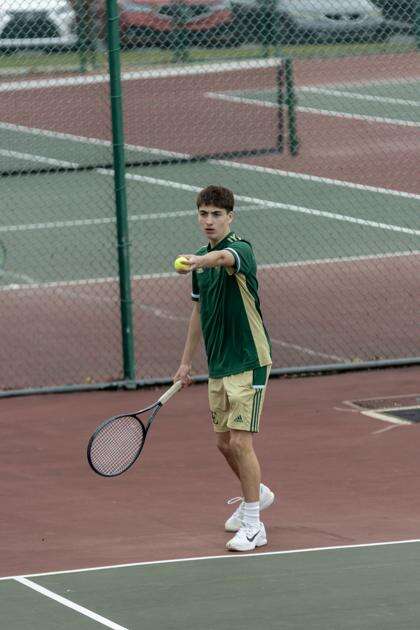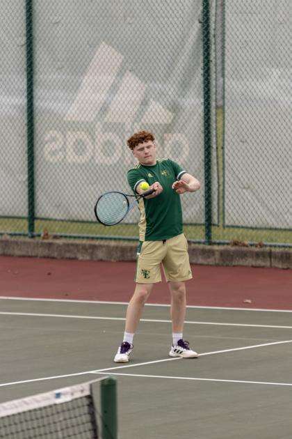 PRESS PHOTO BY GRACE DEPPECole Stuchko hits a forehand during a recent Emmaus tennis match.