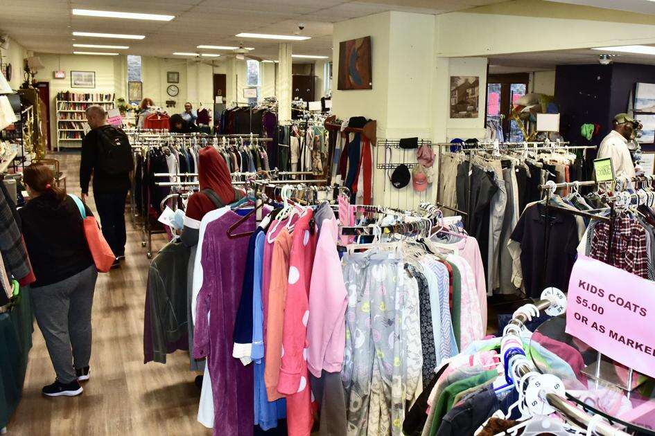 The thrift shop stretches along the lower level at Cathedral Church of the Nativity in South Bethlehem, offering a wide array of goods – shoes to slacks, pantsuits to tweeds, even luggage. Women’s clothing is heavily represented, but so, too, is clothing for children.
